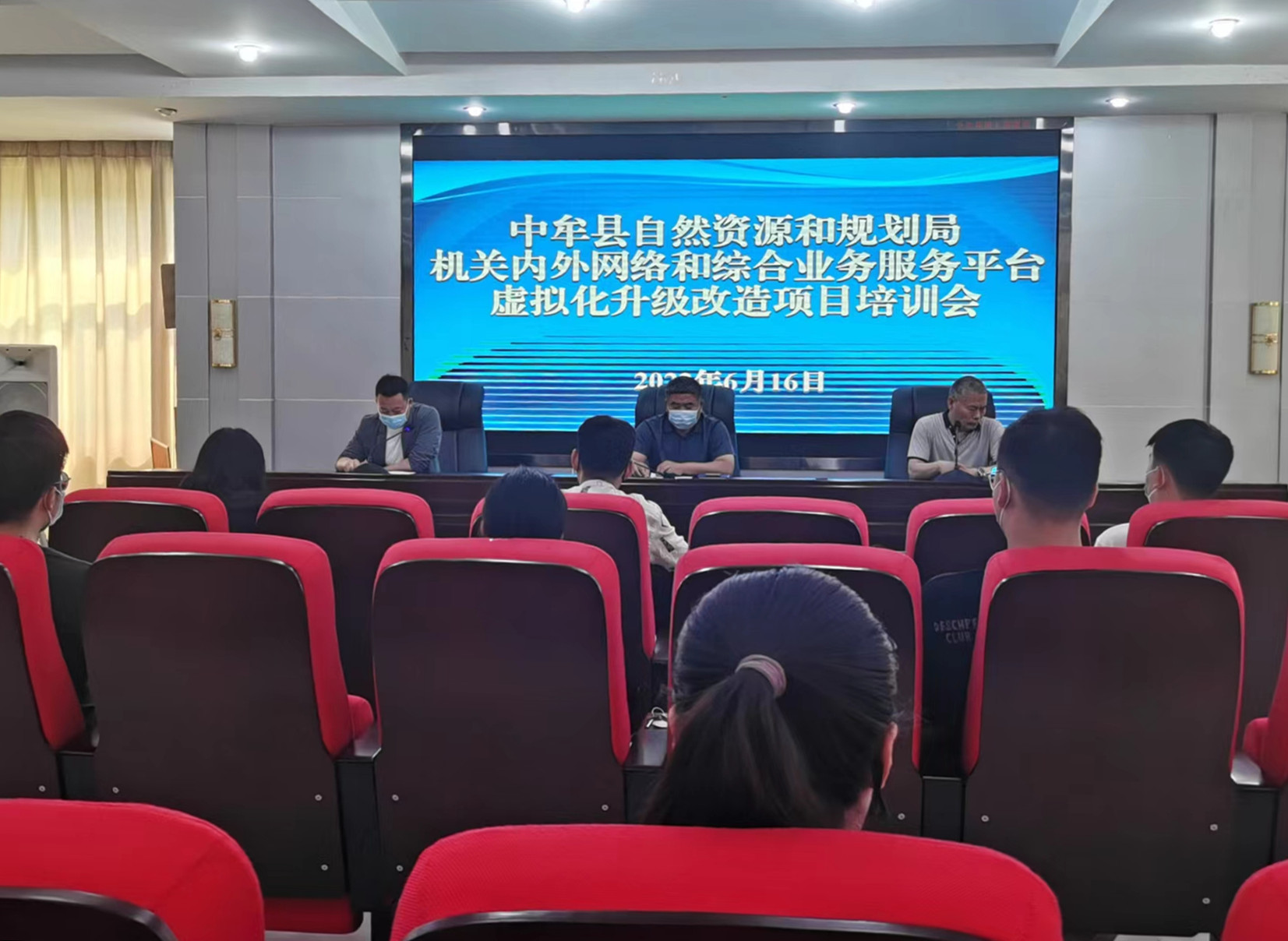 2022年6月16日,中牟县自然资源和规划局在东三楼大会议室召开了“机关内外网络和综合业务服务平台虚拟化升级改造项目培训会”。办公室、综合科、调查监测科、确权登记科、所有者权益科、开发利用科、国土空间规划科、国土空间用途管制科、详细规划科、市政交通规划科、城市设计科、生态修复科、耕地保护监督科、测绘地理信息管理科、行政审批科、建设项目监管科、督查执法科、信访科、人事财务科、组织宣传科、档案室、机关事务管理科、人民调解委员会、机关党委、测绘队、执法监察大队、一中队、二中队、四中队、土地收购储备中心、指挥中心、科技信息科共计33个科室45人参加此次培训会。会议由科技信息科科长李辉主持,局总工程师段军领出席会议并讲话。