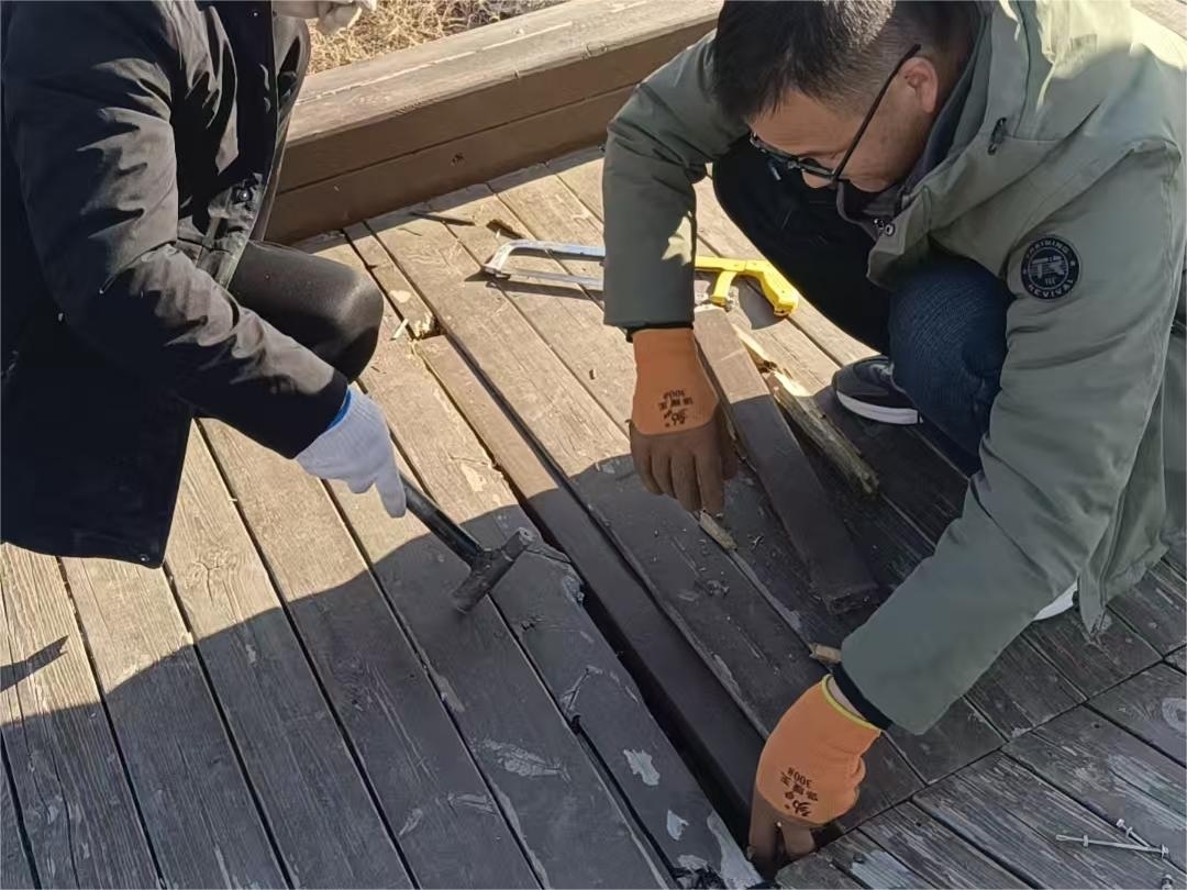 巡查中,工作人员重点检查了河道堤坝稳定性、河岸环境卫生及非法排污情况,并对周边防护设施进行了细致排查。共发现4处栏杆松动、5处木栈道损坏及30余个警示标识损坏或丢失问题,均已记录并安排维修人员及时修复。同时,巡查人员还向周边居民宣传了河道安全知识,进一步提升居民的安全意识和环保意识。