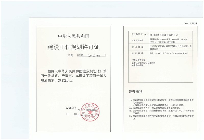 郑州绿博开发建设有限公司2地块建设工程规划许可证信息公示