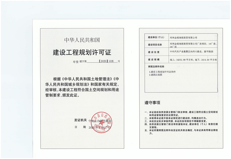 郑州金铭鸿程商贸有限公司建设工程规划许可证信息公示