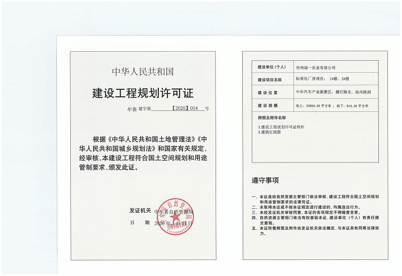 郑州城一实业有限公司建设工程规划许可证信息公示