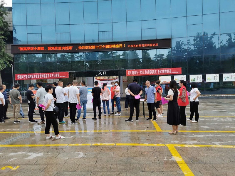 2020年6月9日,为庆祝第13个国际档案日,中牟县自然资源和规划局在县城乡规划展览馆门前举办了“国际档案日”宣传活动,活动以“档案见证小康路、聚焦扶贫决胜期”为主题,采取宣传版面和现场讲解的方式向现场群众介绍了档案管理法规和我局近年来在档案管理工作中的经验和做法,并专题展示了中牟县自然资源和规划局近几年在刁家乡沃孙村扶贫政策和照片档案。