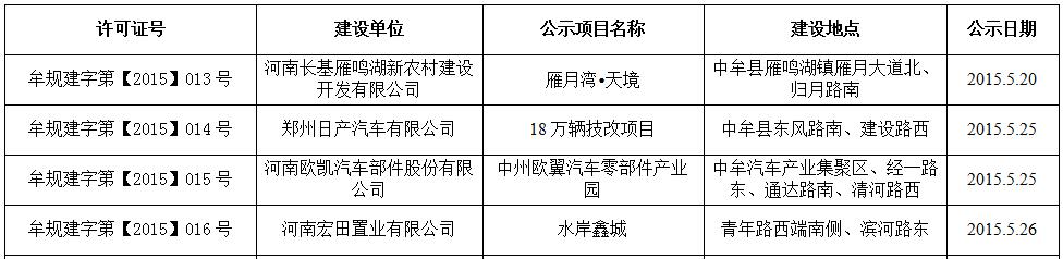 2015年建筑类《建设工程规划许可证》批后公告 五月份