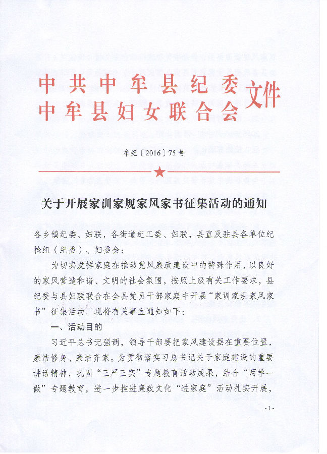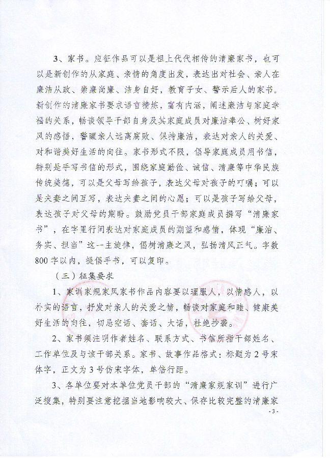 关于开展家训家规家风家书征集活动的通知