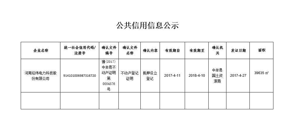河南经纬电力科技股份有限公司等企业信用信息公示