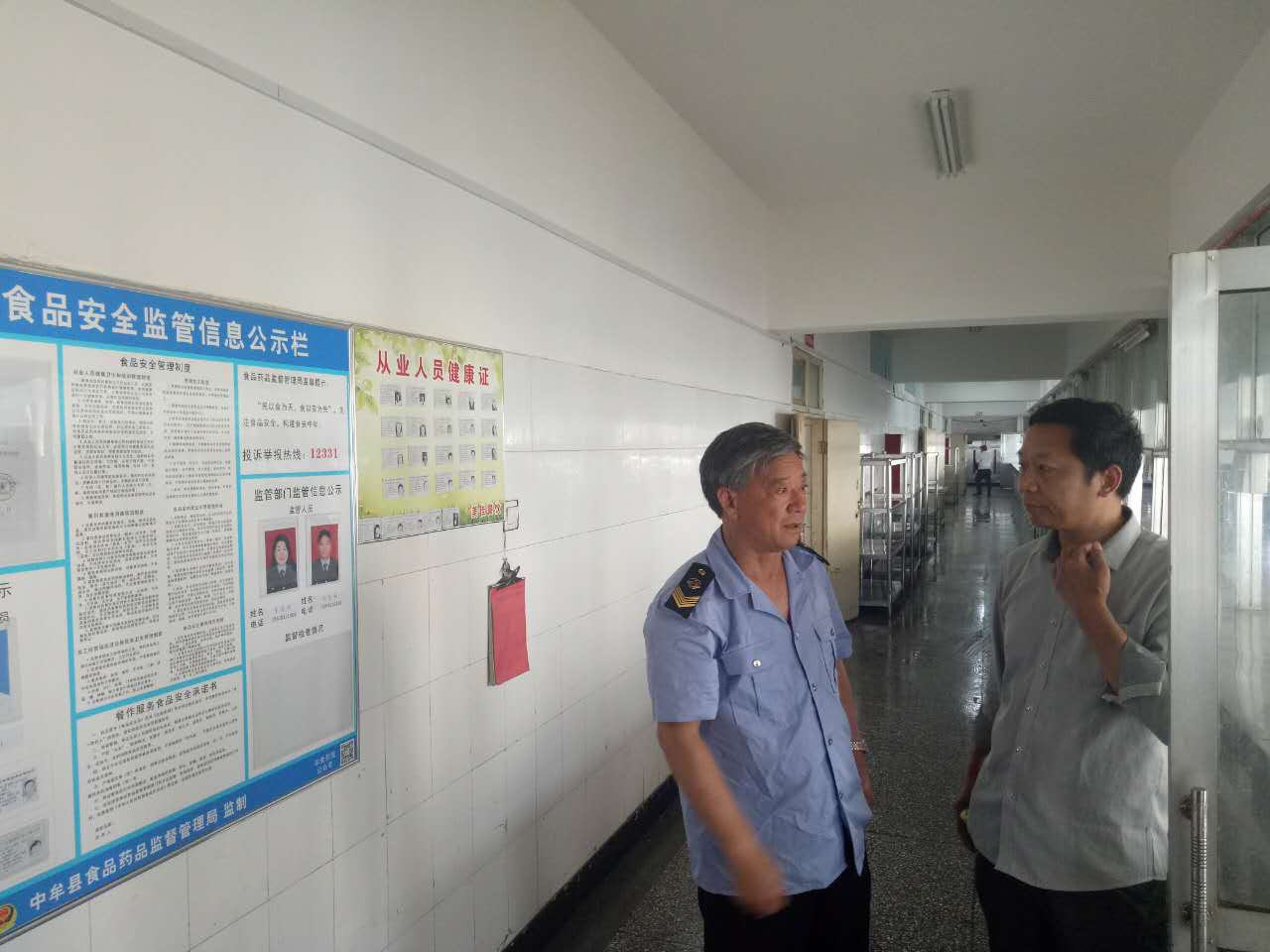 广惠街食品药品监督管理所执法人员对中牟第一高级中学食堂进行了监督检查。重点检查了该食堂的环境卫生情况、《餐饮服务许可证》持有情况、从业人员健康证明的持有情况、购进台账、食品留样及留样记录、食品原料仓库、是否使用过期变质食品及原料等情况。