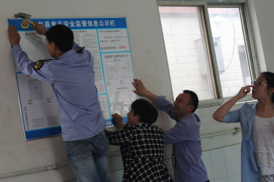 进入5月份,刘集镇食品药品监督管理所执法人员陆续为辖区内监管对象发放信息公示牌100多户,敬老院是重点监管对象,刘集镇食品药品监管所李所长和民政所朱所长带领执法人员亲自送牌挂牌。