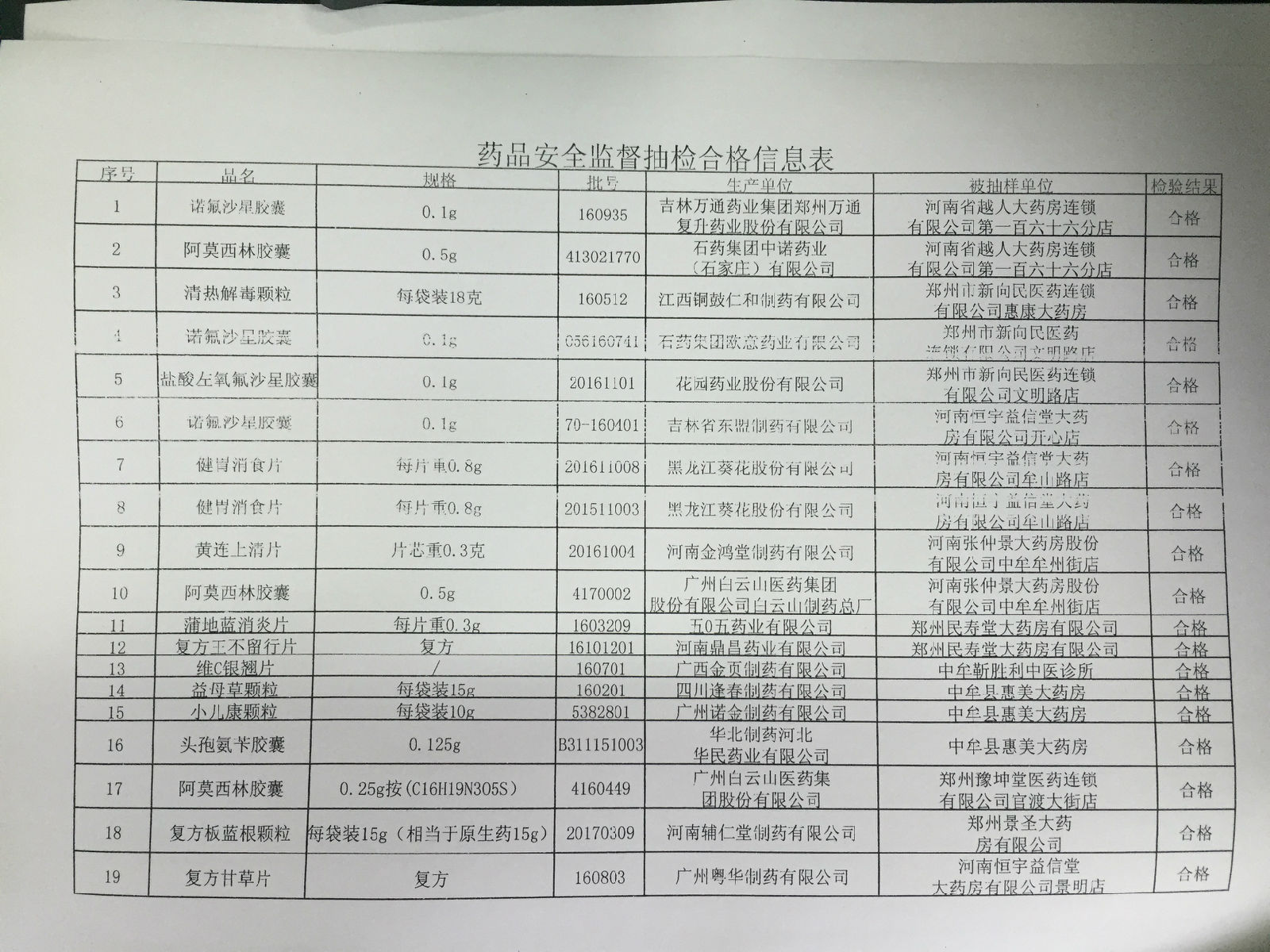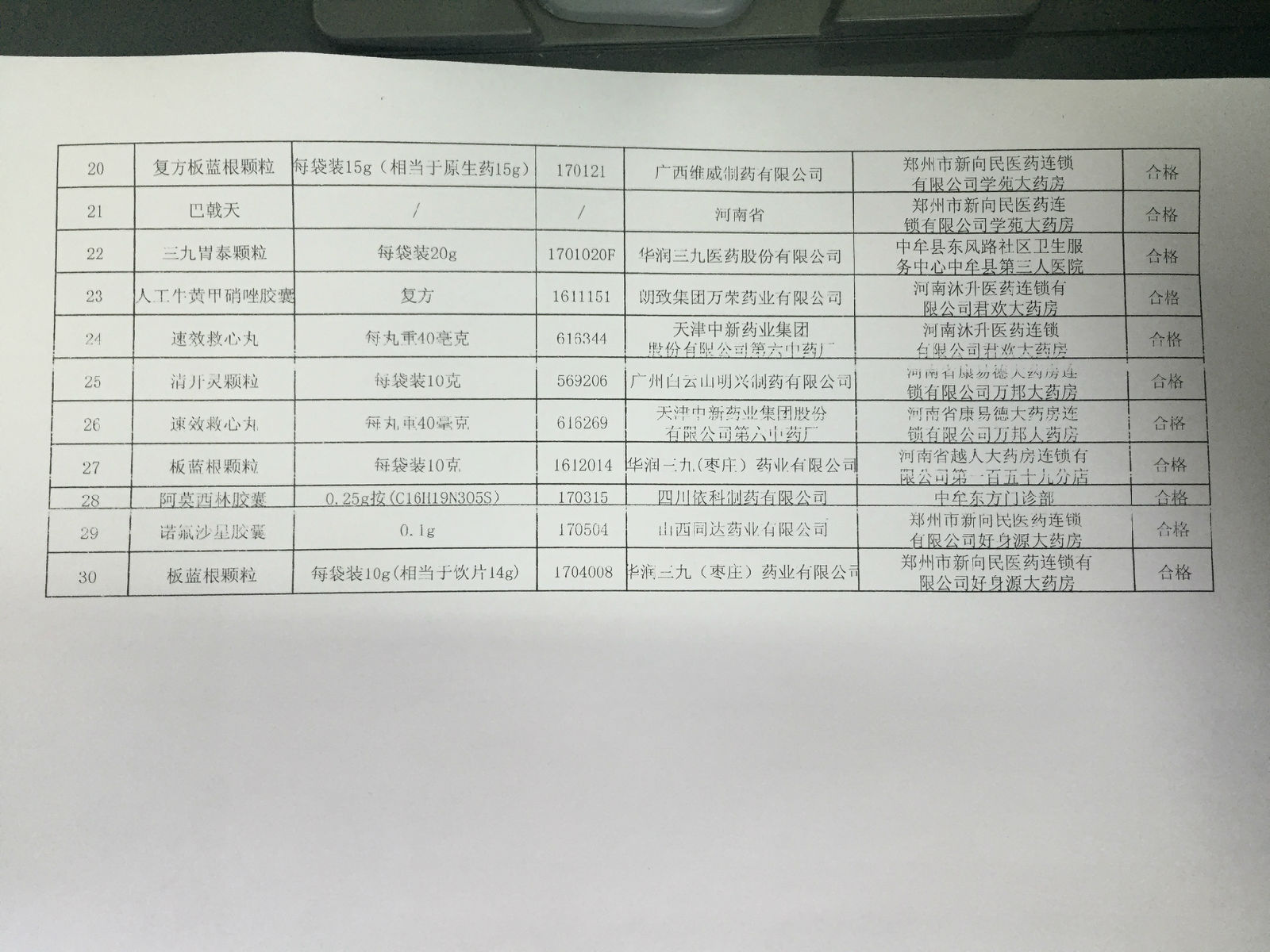 近期,中牟县食品药品监督管理局对全县药品经营企业、医疗机构和个体诊所经营和使用的中药材、中药饮片、中成药和化学药品等开展了监督抽验,共抽验样品30批,检验合格样品30批次,现通告如下: