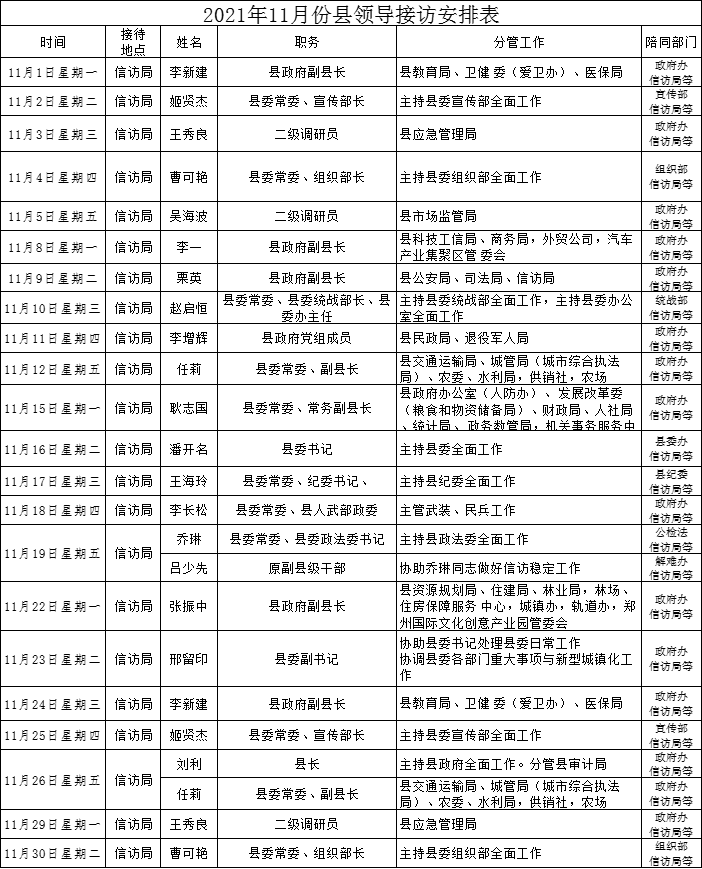 2021年11月份县领导接访安排表