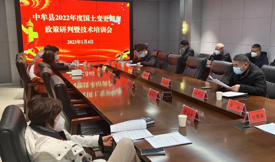 为认真做好我县2022年度国土变更调查工作,掌握2022年度国土变更调查最新政策方向,明确各业务科室工作职责和任务,开展年度变更调查技术培训学习,1月4日,中牟县自然资源和规划局组织召开土变更调查政策研判暨技术培训会议。局党组书记、局长刘国胜主持会议,蔡小燕、段军领等局领导参加会议。耕地保护监督科、调查监测科、空间规划科、用途管制科、执法监督科、确权登记科、开发利用科、所有者权益科、生态修复科、不动产登记中心、指挥中心主任、测绘管理科、测绘队、科技信息科、县林业局森林资源管理科、县农委农田建设科和县水利局业务科,技术公司技术人员参加会议。