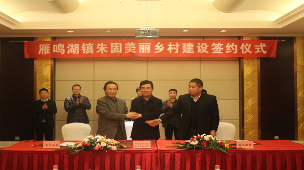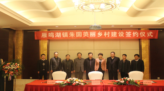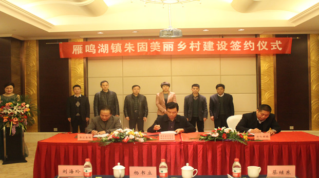 签约仪式上,副县长杨书立代表县政府,浙江华汇建设投资集团总裁蔡继东代表华汇建设投资集团,镇长白钢林代表雁鸣湖镇政府,成功签约雁鸣湖镇朱固美丽乡村建设协议。