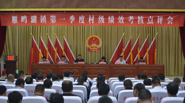 5月3日上午雁鸣湖镇召开第一季度村级绩效考核点评会。全体班子成员、机关干部、各行政村三主干、镇直部门负责人参加会议。