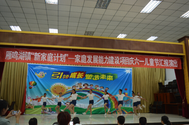 6月1日,雁鸣湖镇在报告厅举行了以“引领成长、塑造未来”为主题的“新家庭计划”——家庭发展能力建设项目庆六一汇报演出宣传活动,来自全镇各小学、中心幼儿园师生欢聚一堂,共同庆祝六一儿童节。本次活动内容丰富,有武术、歌舞、相声、情景剧表演、小品共17个节目。孩子们生动活泼、惟妙惟肖的精彩表演赢得了观众的阵阵掌声。本次活动新家庭计划项目为参加表演的小朋友发放了文具用品、宣传册等纪念品400余份,为小朋友们提供一个健康快乐的舞台,从而体现了新家庭计划项目的顺利实施,受到师生家长的一致好评。