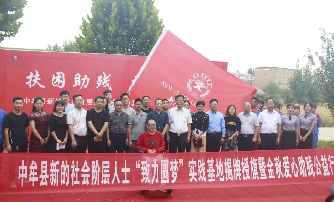 为弘扬中华民族关爱残疾人群体的传统美德,积极履行社会责任,2018年9月17日下午,青年路街道中牟大厦党支部全体党员及公司管理人员在总经理马振强的带领下,参加了由中牟统战部和中牟县新的社会阶层人士联谊会主办的“中牟县新的社会阶层人士‘扶困助贫、致力圆梦’实践基地揭牌暨金秋爱心助残公益活动”。